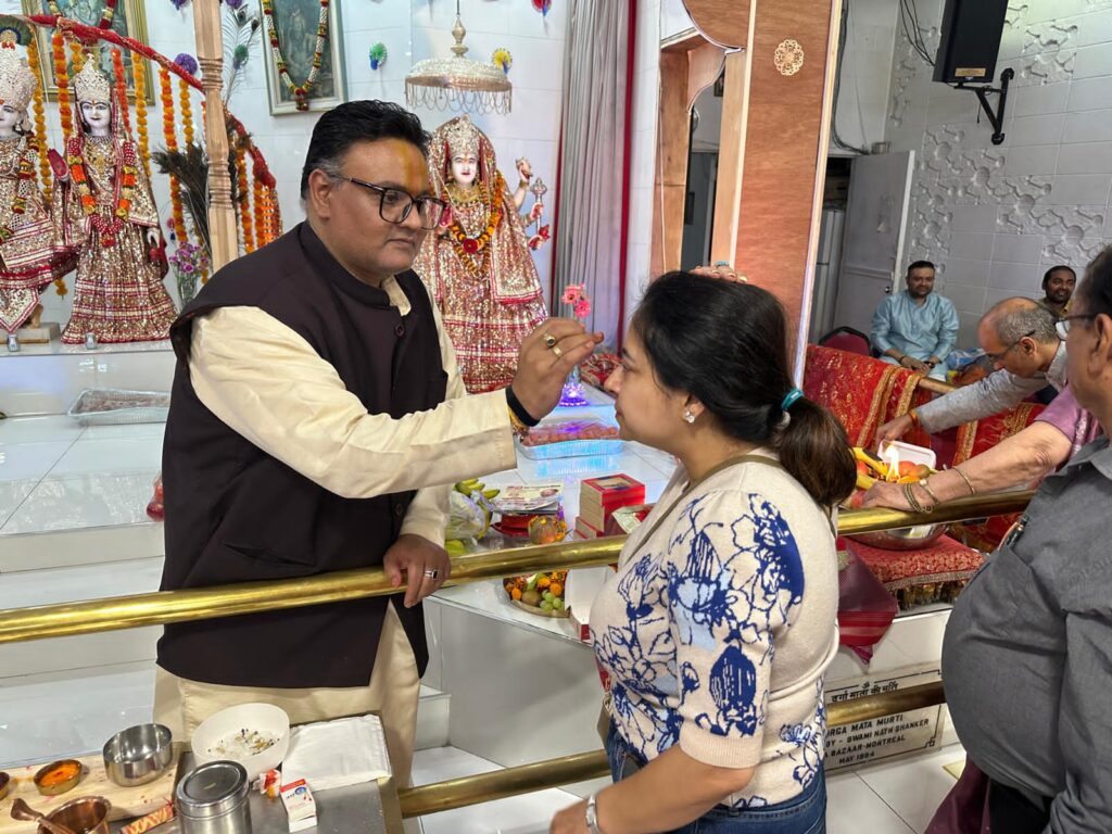 मॉन्ट्रियल (कनाडा)। नवरात्रि के पावन अवसर पर हिन्दू मिशन ऑफ कनाडा मंदिर में आयोजित भजन संध्या एक अद्वितीय भक्ति-उत्सव में परिवर्तित हो गई। प्रवासी भारतीय उद्योगपति स्वामी शंकर के सौजन्य से आयोजित इस संध्या में सैकड़ों श्रद्धालु प्रवासी भारतीय परिवारों ने भाग लिया और माँ दुर्गा की आराधना में डूबकर अध्यात्म तथा संस्कृति का अद्भुत संगम प्रस्तुत किया।