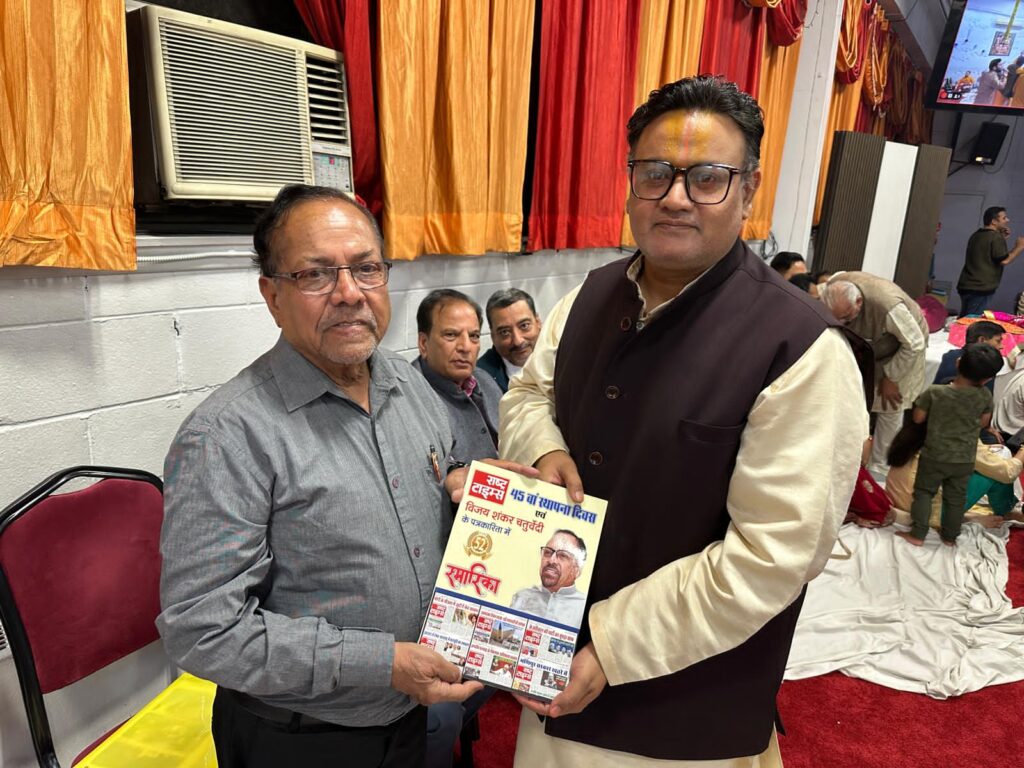 विशेष अतिथि – राष्ट्र टाइम्स के संपादक : इस अवसर पर भारत की राजधानी दिल्ली से कनाडा प्रवास पर आए राष्ट्र टाइम्स के संपादक विजय शंकर चतुर्वेदी ने सपरिवार सहभागिता की। उन्होंने भगवान की प्रतिमा के दर्शन किए और भावुक होकर कहा –“प्रवासी भारतीयों के बीच भक्ति और संस्कृति की यह परंपरा हमारी जड़ों को मजबूत करती है और आने वाली पीढ़ियों को अपनी विरासत से जोड़े रखने का कार्य करती है।”